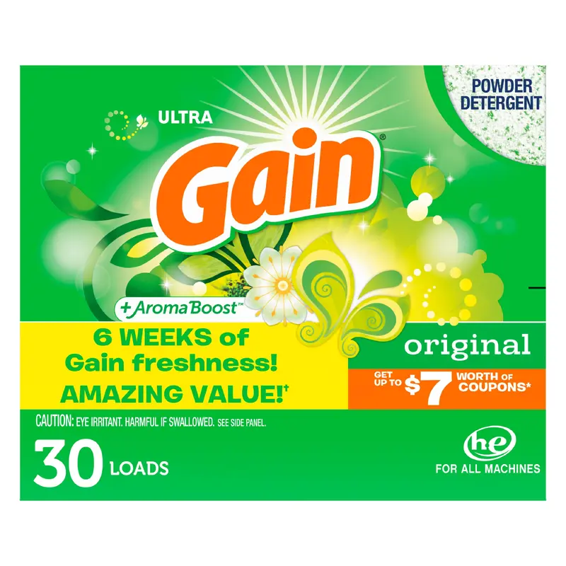$10.34Original price was: $10.34.$8.27Current price is: $8.27.Gain Powder Laundry Detergent in Original Scent. For more of the scent you love, try adding Gain Fireworks and Gain Fabric Softener to your wash.