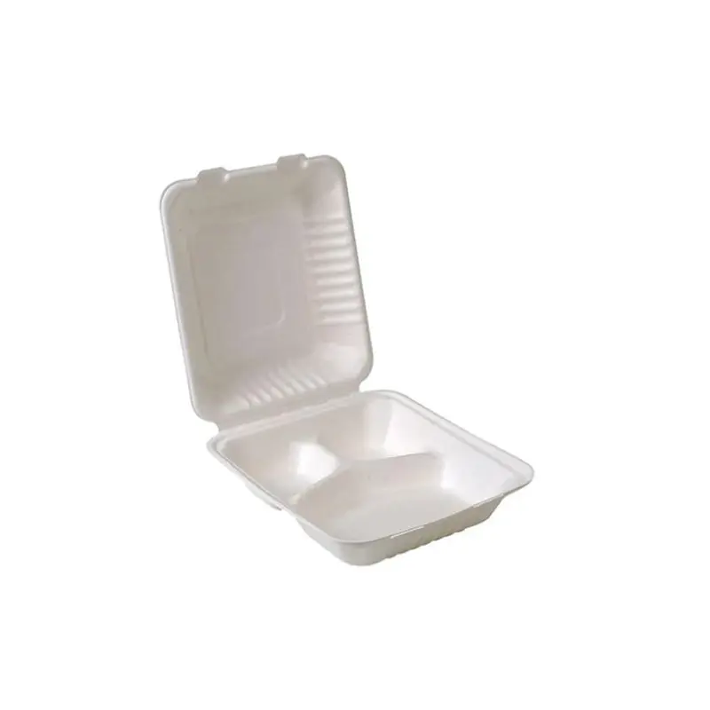 A98091859NEWWAVE – 9IN COMPOSTABLE BAGASSE 3 COMPARTMENT HINGED 50EA