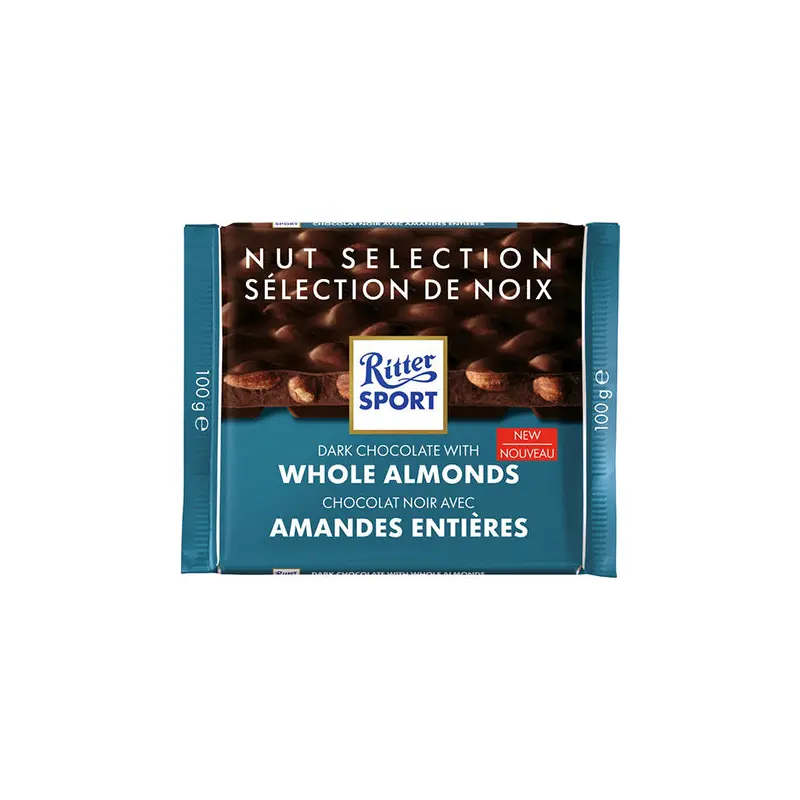 A98094331RITTER – DARK CHOCOLATE WITH WHOLE ALMONDS 100GR